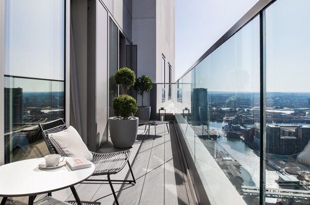 Residents at 10 Park Drive benefit from access to a sky terrace situated on the 13th floor, as well as a private Residents Club, which features intimate seating areas and a library. Residents will be able to hire the sky terrace and Residents Club for special private events.
