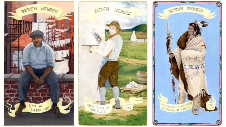 ‘I have chosen the term ‘Butch’ for my title because of its dual nature: it has been slung as an insult and used as a congratulatory recognition of strength. It has a history within the LGBTQIA community and is familiar to the cisgender, heterosexual community. In addition to the term’s traditional associations of being masculine in appearance or actions, I chose ‘Butch Heroes’ to indicate people who were strong or brave in the way they lived their lives and challenged their societies’ strict gender roles.’