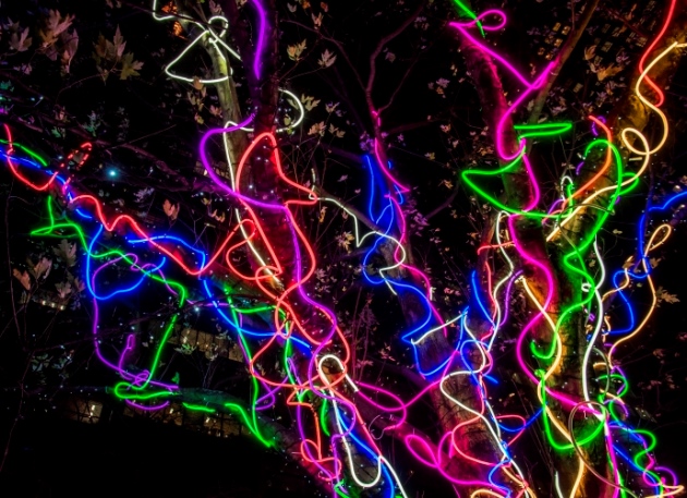 - Neon Tree, also by Hawthorn, intertwines the forces of technology and nature, as bare branches from the natural structure are coiled with shining neon. Visit during the day to see its subtle glow or visit at night to witness the colours shine in all their glory.