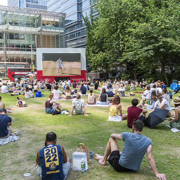 Canary Wharf’s summer screens will be serving up all the action from Wimbledon for free at both Canada Square Park and Cabot Square from Monday 3 July.
