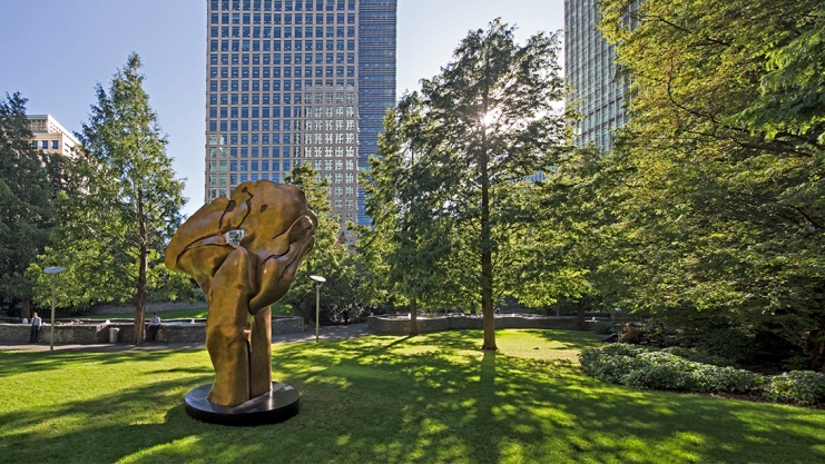 Fortuna, the impressive sculpture, is situated in the award-winning and tranquil Jubilee Park, designed by international landscape architect, Jacques Wirtz. At five metres high, Fortuna, is Blumenfeld’s most ambitious work to date in a career that spans over 50 years. The work in patinated bronze is inspired by the eponymous Roman goddess of destiny and evokes the fullness and complexity of the human condition.