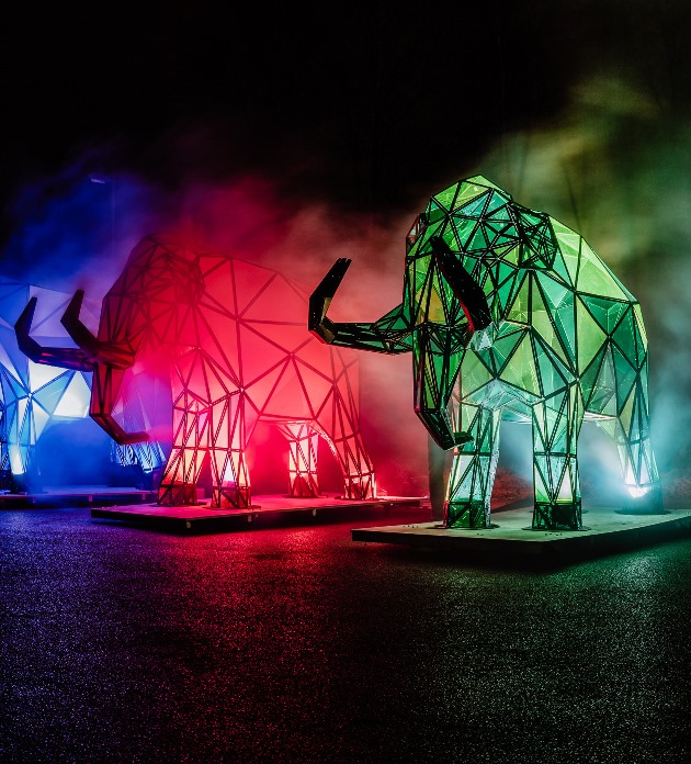 The bright lights of Canary Wharf will glow even brighter with installations including ‘Permafrost – Sleeping Giants by Fisheye’, which will bring brightly-coloured, giant mammoths to life and ‘Tom Lambert’s Out of the Dark’, a kaleidoscopic installation of mesmerising moving colour.